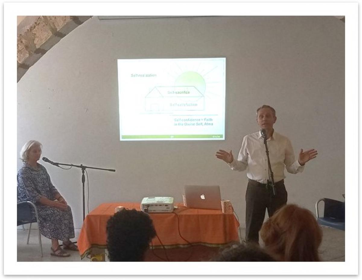The seminar opened with an inspiring meditation on the Light, guided by Ms. Brigitte Kashtan, National Council President of the SSSIO of Israel and was followed by two outstanding presentations delivered by the keynote speaker, Mr. George Bebedelis, Director of the ISSE SE. The presentations, which focussed on the important topic of “Divine Love: the eternal yearning for Truth, Goodness and Beauty”, based on the philosophies of Plato, Plotinus and Sathya Sai, brought joy and inspiration to the audience. Moreover, George’s deep knowledge of the subject, rich experience and unique way of representing a living example of the philosophy and values he shares, was tangible and highly appreciated by all.